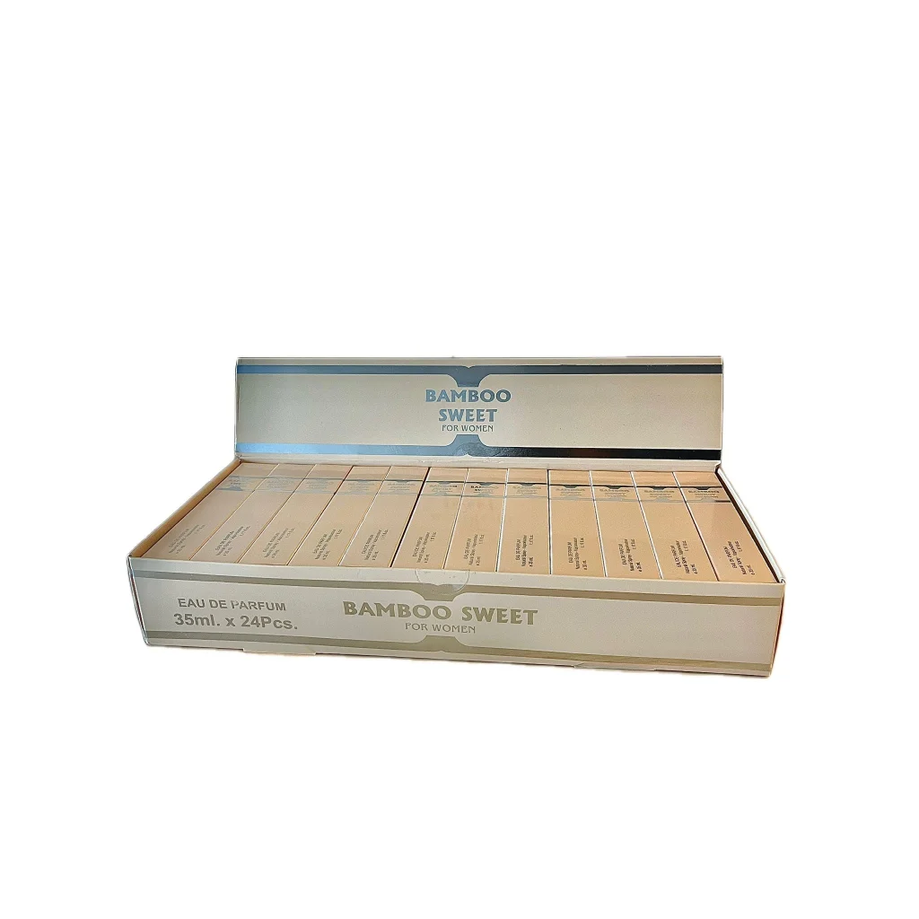 De FC Bamboo Sweet Women EDP 35 ml is een verfijnde parfum die speciaal is ontworpen voor de moderne vrouw die houdt van een geur die zowel fris als zoet is. Deze sweet women edp combineert subtiele bloemige en fruitige noten met een zachte, houtachtige basis, waardoor een warme en uitnodigende geur ontstaat die de hele dag meegaat. Met een inhoud van 35 ml is dit parfum perfect geschikt voor dagelijks gebruik of voor speciale gelegenheden, en biedt het een elegante manier om je persoonlijke stijl te accentueren. De bamboo sweet women geur straalt verfijning uit en is ideaal voor vrouwen die willen uitstralen dat ze zelfverzekerd en charmant zijn. Dankzij de lange houdbaarheid en de aantrekkelijke geurcompositie is dit een waardevolle toevoeging aan elke parfumcollectie, die zowel de zintuigen prikkelt als een blijvende indruk achterlaat. Ontdek de harmonie van frisse en zoete aroma's met de bamboo sweet geur en ervaar de verfijnde elegantie die deze sweet women edp biedt, perfect afgestemd op de hedendaagse vrouw die haar unieke karakter wil uitdrukken.