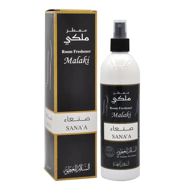 Deze geparfumeerde water is speciaal ontwikkeld om nare luchtjes effectief te neutraliseren en een aangename geur achter te laten. Het is vooral geschikt voor gebruik in kleine ruimtes zoals het toilet, de auto, kasten, en andere compacte omgevingen waar frisse lucht gewenst is. Daarnaast is het ideaal voor het verfrissen van textiel, zoals banken en gordijnen, waardoor je huis of auto een langdurige, frisse sfeer krijgt. De parfumolie in deze kamerverfrisser Sana zorgt voor een subtiele maar doeltreffende geur, geïnspireerd door Arabische parfumtradities, die een exotisch en verfijnd aroma toevoegen aan je omgeving. Met een inhoud van 410 ML biedt deze spray voldoende voor meerdere toepassingen, waardoor je telkens weer kunt genieten van een frisse en aangename atmosfeer. Of je nu snel een frisse geur wilt in de auto, je kasten wilt verfrissen, of je kleine ruimtes wilt opfrissen, deze kamerverfrisser is een praktische en effectieve oplossing die je dagelijks comfort verhoogt. Het gebruik van hoogwaardige parfumolie zorgt voor een langdurige geurbeleving, terwijl de spray eenvoudig en snel aan te brengen is. Door de subtiele geur en het gebruiksvriendelijke ontwerp, biedt deze kamerverfrisser Sana een verfijnde manier om nare luchtjes te verdrijven en je omgeving fris en uitnodigend te houden. Ideaal voor wie waarde hecht aan een aangename sfeer en de kracht van Arabische parfumgeuren in huis en auto.