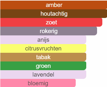 De topnoten openen met de rijke en aromatische geur van Sukadeboom, die meteen de aandacht trekt met zijn diepe, houtachtige karakter. In het hart van de parfum vinden we een complexe combinatie van steranijs, aromatische noten en olijfbloesem, die samen een verfijnd en mysterieus aroma creëren dat de zintuigen prikkelt en een gevoel van elegantie uitstraalt. De basisnoten bestaan uit Guaiac hout, tonkaboon, tabak en rokerige noten, die de geur een warme, aardse en krachtige finish geven. Deze combinatie zorgt voor een diepe, langdurige geur die zich subtiel ontwikkelt op de huid en je de hele dag door vergezelt.
