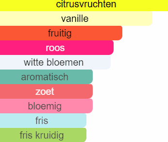 Top: De frisheid en levendigheid worden vooral bepaald door noten van Nootmuskaat, Roze peper, Pepermunt, Citroen, Sinaasappel en Grapefruit. Deze frisse en sprankelende topnoten zorgen voor een uitnodigende opening die meteen de zintuigen prikkelt, perfect voor wie houdt van een energieke en verfrissende geurbeleving.