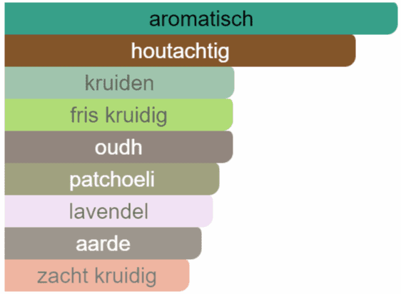 - Topnoten: bergamot, meloen, ananas, pruimen, peer, peper en zwarte peper; deze frisse en fruitige geuren zorgen voor een levendige opening die meteen de aandacht trekt. Ze geven het parfum een energiek en verkwikkend karakter dat perfect is voor dagelijks gebruik of speciale gelegenheden. Hartnoten: limoen, citroen, lelietje-van-dalen, fresia, jasmijn; de hartnoten brengen een bloemige en citrusachtige diepte, waardoor het parfum een verfijnde en elegante uitstraling krijgt. Ze zorgen voor een subtiele balans tussen frisheid en bloemigheid, wat het parfum geschikt maakt voor zowel overdag als avondgebruik. Basisnoten: leer, eikenmos, cederhout, patchouli, ambergris en witte muskus; de basisnoten geven het parfum diepte en duurzaamheid. De warme, aardse tonen van leer en eikenmos in combinatie met de houtachtige geuren van cederhout en patchouli zorgen voor een rijke en luxueuze afdronk. De ambergris en witte muskus voegen een zachte, sensuele finishing touch toe, waardoor het parfum een langdurige en betoverende geur achterlaat.